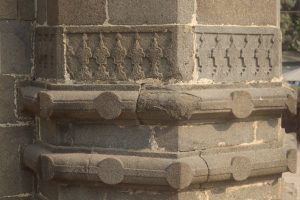 One of the oldest mosques in Bangladesh is the Kusumba Masjid, a 16th C mosque from the time the Mughuls dominated India – although the ones who ordered the construction of the mosque were the Aghan rulers that controlled Bengal at the time. It is built from grey stone, and the outer sides are beautifully worked, with decorations that occasionally also do resemble Hindu symbols. The inside has some brick vaults, and no less than four exquisitely carved stone mirhabs, with mostly nature motifs.