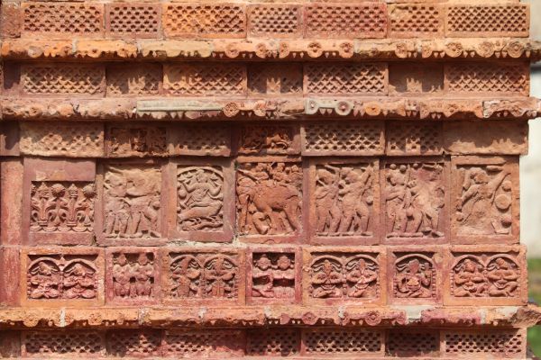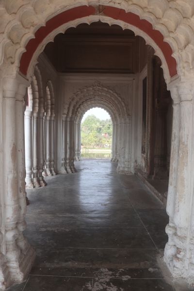 Across the lawn from the palace is the early 19th C Dol Mancha, a four-storied square building with porches surrounding each floor. A short walk away is the Bara Shiva temple, dating from 1823, which is described as the most outstanding building, but in my view is a bit more basic than the others. There is none of the brick decoration, and the decoration of the arches looks more the result of stucco. Besides the Shiva temple is another small temple, the octagonally shaped Jagannath temple.