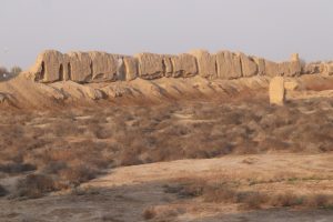 a badly eroded wall in the old city of Merv, once the biggest city in the world
