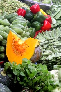 In the evening I take a stroll, outside the hotel, to the local market. I got attracted to the fish sellers on the side of the streets, but then it turns out that there is a far bigger market inside, with more fish, chicken and turkey, and with fruit and vegetable. The sellers are, once again, only men. But they are so friendly again, proud to have their products photographed, and themselves. Great atmosphere. Great pictures. But why is this fish not penetrating to our dinner table in the various hotels and restaurants where we have been?