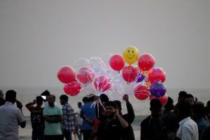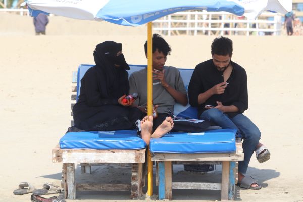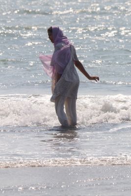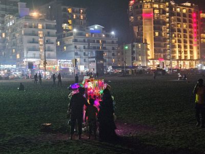 It shows, in the number of beach resorts along the coastal road, some of them quite flashy. And in the number of people on the beach, during the whole day, until quite late in the evening. There is not really a beach culture like we know it, because taking off any part of your clothing is obviously not done in a Muslim society, especially for women, so beach wear is absent. Instead, people walk fully clothed into the water, usually not much further than ankle-deep, occasionally calf-deep. But they clearly have a lot of fun, together – whole families gather for sunset, or on a pair of reclining chairs under a parasol. Little stands sell food, others sell toys, and a man walks around with illuminated balloons. An experience.