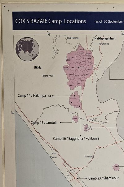 The second thing Cox Bazar has the biggest of in the world, is a refugee camp, with an estimated 1.2 million people, Rohinyas who fled genocide from Myanmar, just across the border, in 2017. Actually, the camps are a bit outside town, about an hour’s drive. We have been given official permission to visit, from the RRRC, the government body that manages the refugee operations together with UNHCR and one of my former employers, IOM. Over a million people is too many to manage, of course, so they have been distributed over a total of 34 individual camps, the majority in a contiguous area called Kupalotang.
