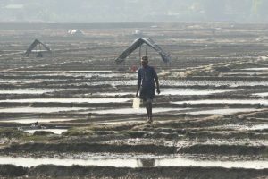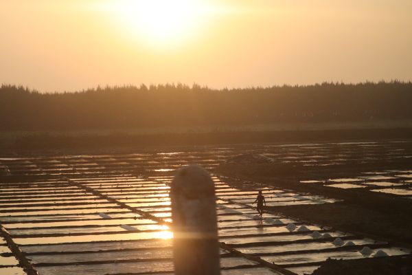From the camp we drive further south, occasionally passing more, isolated and smaller, camps. We are not far from the sea: sea water is let into the many ponds that have been constructed for salt winning, through evaporation. Quite an extensive industry, on both sides of the road.