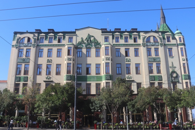 the enormous Hotel Moskva, opposite our apartment, is a great example of Hungarian Secessionist style, Art Nouveau-like