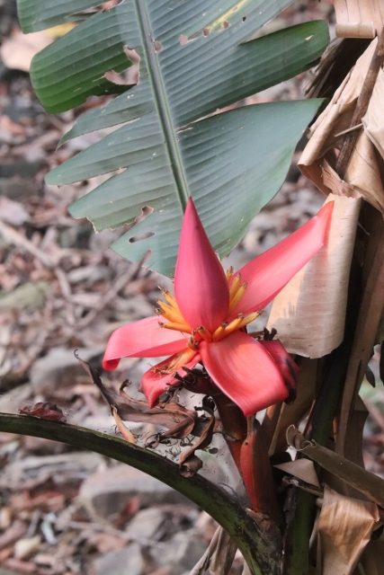 We take the long way back, avoiding the National Highway, which means another nature delight, through green jungle vegetation, lots of banana trees, and the occasional expansive view over the valleys below – mostly obscured, though, by the trees, and by the continuing haze. New terraces are being created, by burning the trees, and parts of the slopes are black, and almost bare.