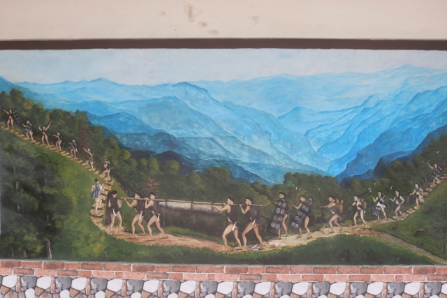 the mural that reminds the villagers about the origin of the village, which name means ‘growing stone’