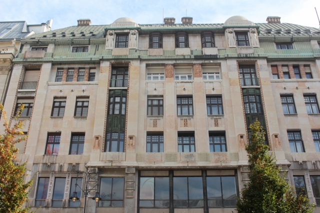 Not only the Gresham Palace, also shown in the second Budapest entry of this blog, is a great example of Budapest Art Nouveau. The Modern & Breitner Building, on Deak Ferenc square, was built in 1911, too early for Art Deco, although on websites frequently linked to this style. Yet, there are plenty of elements that remind me of the Cubism we saw in the Czech Republic last year, and which is often seen as a precursor for Art Deco. Definitely Art Nouveau – I think – is the building on Vorosmarty Square called Kasselik-haz (Kasselik House), also from 1911. It was built for unemployed and for orphans of civil servants. Imagine something like that today.